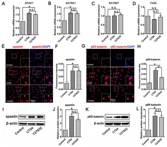 3.4. The RhoA Signaling Pathway Inhibits Spastin and p60-Katanin Expression