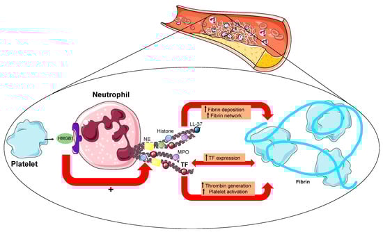 - Maugeri, N.; Campana, L.; Gavina, M.; Covino, C.; De Metrio, M.; Panciroli, C.; Maiuri, L.; Maseri, A.; D’Angelo, A.; Bianchi, M.E.; et al. Activated platelets present high mobility group box 1 to neutrophils, inducing autophagy and promoting the extrusion of neutrophil extracellular traps. J. Thromb. Haemost. 2014, 12, 2074–2088. [Google Scholar] [CrossRef]