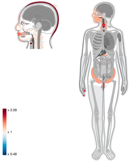 In order to identify body parts that are expected to be affected by changes in expression level of these genes, we used Gene ORGANizer [] on the combined list of new and previously identified DMGs. We found that the previously reported enriched body parts (mostly related to the face and larynx) become even more significant, and that new body parts are now significantly enriched with the DMGs, including the chin, hair, scalp, and spinal-column (Figure 2, Table 1, Supplementary Figure S1).