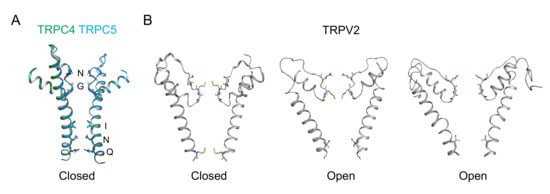 - Duan, J.; Li, J.; Zeng, B.; Chen, G.L.; Peng, X.; Zhang, Y.; Wang, J.; Clapham, D.E.; Li, Z.; Zhang, J. Structure of the mouse TRPC4 ion channel. Nat. Commun. 2018, 9, 3102. [Google Scholar] [CrossRef] [PubMed]