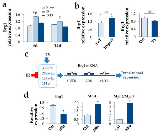 The following are available online at https://www.mdpi.com/2073-4409/9/10/2155/s1, Figure S1: Alignment of the identified rno Mhrt coding sequence with the homologous mmu Mhrt coding sequence, Table S1: TH level in rat serum at baseline and at the end of each experimental procedure, Table S2: List of oligonucleotide sequences, Table S3: Predicted interactions between the T3-upregulated miRNAs and the 5′UTR, CDS and 3′UTR sequences of the rat and human Brg1 mRNA.