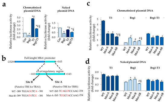 3.2. T3 Modulation of Mhrt Promoter and Brg1 Activity Relies on Chromatin Remodeling