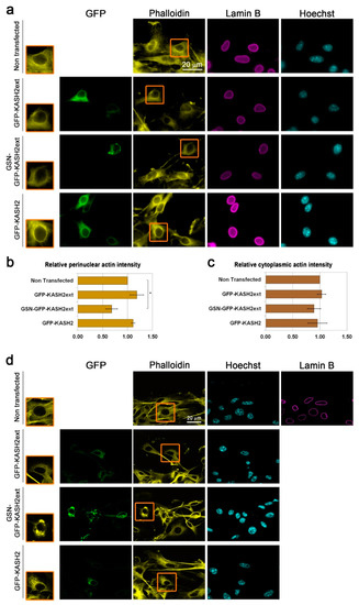 The following are available online at https://www.mdpi.com/2073-4409/9/10/2161/s1, Figure S1: Levels of over-expressed lamin A and lamin B1. Figure S2: Migration signals induce the formation of a perinuclear actin rim. Figure S3: Migration induced perinuclear actin rim is peripheral to the nuclear lamina. Figure S4: Induction of migration does not alter the protein levels of lamin B1 and lamin A. Figure S5: Levels of expressed GSN-GFP-KASH2ext, GFP-KASH2ext and GFP-KASH2.