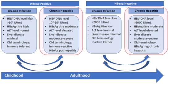 - Terrault, N.A.; Lok, A.S.F.; McMahon, B.J.; Chang, K.M.; Hwang, J.P.; Jonas, M.M.; Brown, R.S.; Bzowej, N.H.; Wong, J.B. Update on prevention, diagnosis, and treatment of chronic hepatitis B: AASLD 2018 hepatitis B guidance. Hepatology 2018, 67, 1560–1599. [Google Scholar] [CrossRef]
