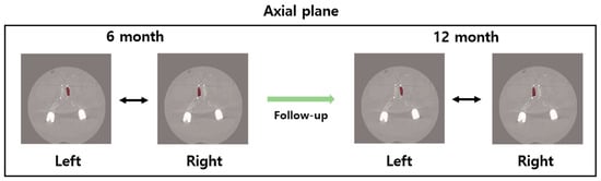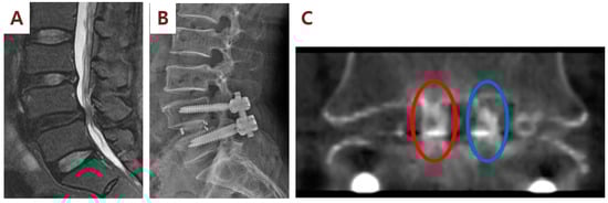 All data were expressed as the mean ± standard error of mean (SEM). The fusion rates between the right PLIF cage and the left PLIF cage were compared, and they did not follow a normal distribution, so a Mann–Whitney U test was used as a statistical analysis method. Since the comparative analysis of HU values follows a normality distribution, each feature value was analyzed with incremental reduction analysis and an independent samples t-test. The incremental reduction analysis calculated the difference between the mean feature values at follow-up, and the t-test compared the left and right differences. A p-value < 0.05 was considered statistically significant. All statistical analyses were performed using SPSS for Windows version 25.0 (SPSS, Inc., Chicago, IL, USA).