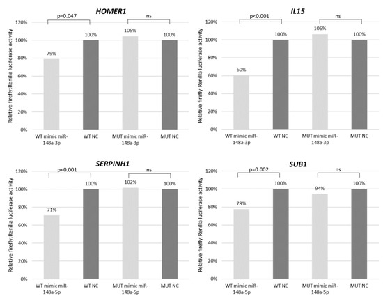 3.4. IL15, HOMER1, SERPINH1 and SUB1 Are mir-148a Target Genes