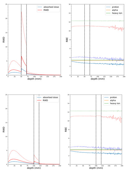 - Stewart, R.D.; Carlson, D.J.; Butkus, M.P.; Hawkins, R.; Friedrich, T.; Scholz, M. A comparison of mechanism-inspired models for particle relative biological effectiveness (RBE). Med. Phys. 2018, 45, e925–e952. [Google Scholar] [CrossRef]