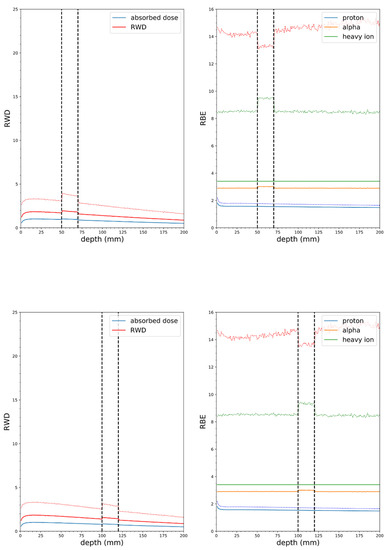 - Sato, T.; Kase, Y.; Watanabe, R.; Niita, K.; Sihver, L. Biological Dose Estimation for Charged-Particle Therapy Using an Improved PHITS Code Coupled with a Microdosimetric Kinetic Model. Radiat. Res. 2009, 171, 107–117. [Google Scholar] [CrossRef] [PubMed]