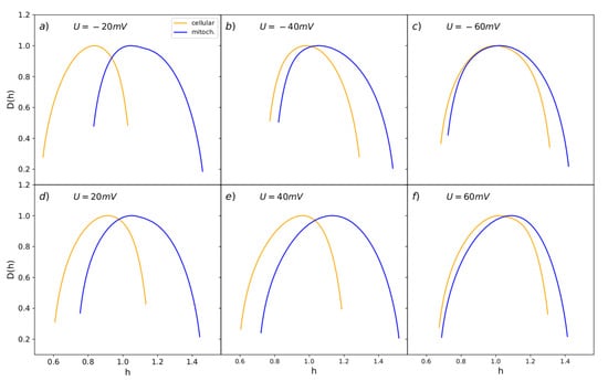 The final correlation analysis performed in this work was the MFDFA analysis of single channel currents. This methodology allowed us to indicate that the series of channel currents have multifractal characteristics and are nonrandom but caused by the orderly process exhibiting long-range correlation features regardless of the applied voltage or membrane type (cellular or mitochondrial). As one can see in Figure 7, the obtained multifractal spectra corresponding to BK channels from the inner mitochondrial membrane are well separated from the ones describing the activity of channels from plasma membranes. Only at strong membrane potential ( mV) the gating dynamics of mitochondrial and cell-membrane BK channels seem to be less diversified.