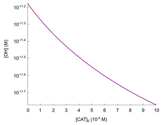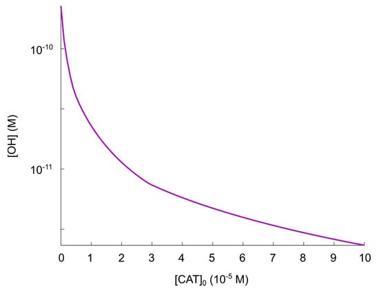 Maximal concentration of hydroxyl radicals as a function of catalase concentration in the regime.