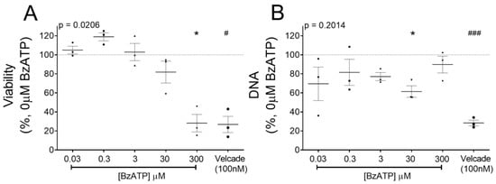 - Gilbert, S.M.; Oliphant, C.J.; Hassan, S.; Peille, A.L.; Bronsert, P.; Falzoni, S.; Di Virgilio, F.; McNulty, S.; Lara, R. ATP in the tumour microenvironment drives expression of nf P2X7, a key mediator of cancer cell survival. Oncogene 2019, 38, 194–208. [Google Scholar] [CrossRef] [PubMed]