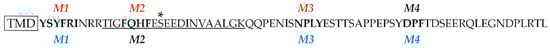 Park et al. [50] found in macrophages that the GULP pTyr binding domain binds to the HARE cytoplasmic NPLY motif, indicating that the NPLY domain is phosphorylated and thus a ligand for GULP binding. Consistent with these findings, Kyosseva et al. [56] also reported that HARE endocytosis of HA stimulates phosphorylation of the HARE CD, shown by pTyr-protein immunoprecipitation and detection with anti-HARE Ab and by HARE immunoprecipitation and detection with anti-pTyr Ab. Three of the four Tyr residues in the HARE CD are in endocytic motifs M1 and M3 (Figure 5).