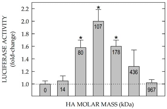 - Weigel, P.H.; Baggenstoss, B.A. What is special about 200 kDa hyaluronan that activates hyaluronan receptor signaling? Glycobiology 2017, 27, 868–877. [Google Scholar] [CrossRef]