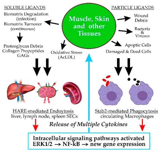 - Weigel, P.H.; Pandey, M.S.; Harris, E.N. A HARE/STAB2-mediated sensing system to monitor tissue biomatrix homeostasis and stress. In Structure and Function of Biomatrix: Control of Cell Function and Gene Expression; Balazs, E.A., Ed.; Matrix Biology Institute: Edgewater, NJ, USA, 2012; pp. 293–314. ISBN 978-0-9856518-1-7. [Google Scholar]