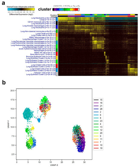 - Liao, M.; Liu, Y.; Yuan, J.; Wen, Y.; Xu, G.; Zhao, J.; Cheng, L.; Li, J.; Wang, X.; Wang, F.; et al. Single-cell landscape of bronchoalveolar immune cells in patients with COVID-19. Nat. Med. 2020, 26, 842–844. [Google Scholar] [CrossRef] [PubMed]