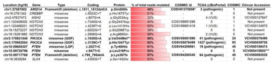 - Cerami, E.; Gao, J.; Dogrusoz, U.; Gross, B.E.; Sumer, S.O.; Aksoy, B.A.; Jacobsen, A.; Byrne, C.J.; Heuer, M.L.; Larsson, E.; et al. The cBio cancer genomics portal: An open platform for exploring multidimensional cancer genomics data. Cancer Discov. 2012, 2, 401–404. [Google Scholar] [CrossRef] [PubMed]