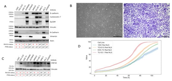 Antibodies against PIK3CA (#4255S), PTEN (D5G7) (#5384S), phospho-4E (#2855S), 4E-BP1(#9452S), phospho-Akt (Ser473) (#9271S), AKT (#9272S), phospho-p70 S6K (#9234S), p70 S6K (#2708S), E-Cadherin (24E10) (#3195S), N-Cadherin (D4R1H) (#13116S), Vimentin (D21H3) (#5741S), and EpCAM (D9S3P) (#14452) were purchased from Cell Signaling (Whitby, ON, Canada). Antibodies against Vinculin (#V9264), Actin (#A2066), CK-7 (Clone OV-TL 12/30) (#MAB3554), and HNF1-beta (clone 12A5.1) (#MABE971) were obtained from MilliporeSigma (Oakville, ON, Canada). Antibody against ARID1A/BAF250 (#A301-041A-M) was purchased from Bethyl Laboratories (Montgomery, Texas, United States). HRP-conjugated antibodies against mouse IgG (#NA931) and rabbit IgG (#NA934) were procured from GE Healthcare Life Sciences (Baie d’Urfe, QC, Canada).