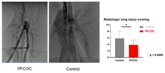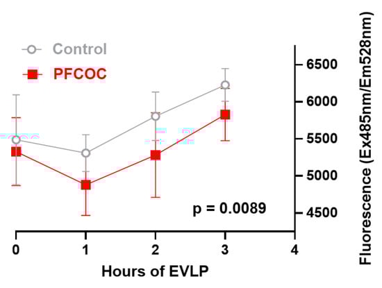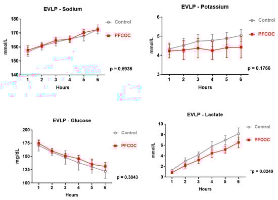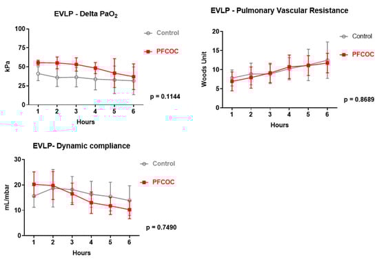 - Control: Lungs were retrieved and stored for 24 h at 4 °C. EVLP was performed without PFCOC (n = 6). EVLP time was 6 h.