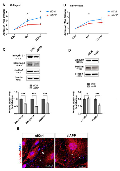 3.3. APP Silencing Affects Endothelial Cells Adhesion and Promotes a Reorganization of Focal Adhesions Complex
