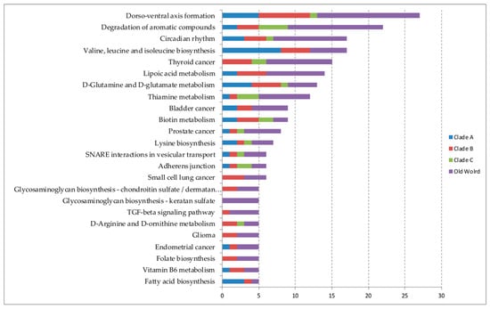 | Clade A Viruses | Total miRNAs (Binding-Sites) | Clade B Viruses | Total miRNAs (Binding-Sites) | ||