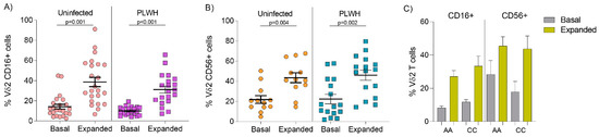 3.2. Comparable Expression of CD16 and CD56 on Vδ2 Cells from Uninfected Donors and PLWH on Stable ART