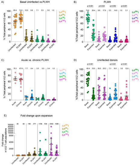 3.3. Similar Composition of Vδ2 Cell Populations in Uninfected Donors and PLWH