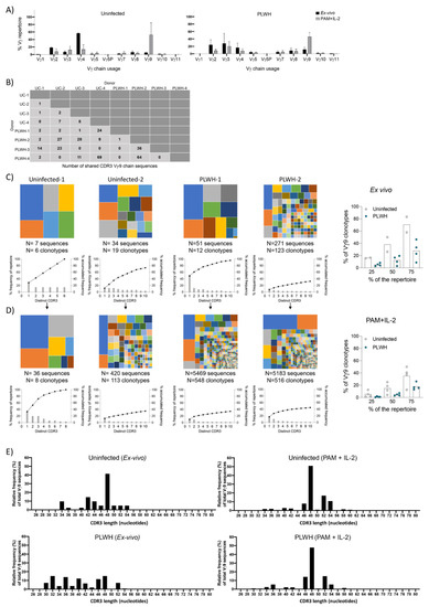 3.4. Vδ2 Cell Populations Are Distributed amongst Several Profiles in Both Uninfected Donors and PLWH
