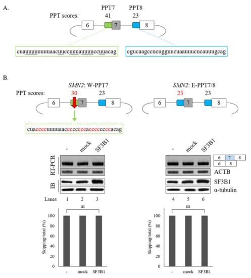 3.4. PPT Sequences of Cassette Exon Are Essential for SF3B1 Function in SMN Exon 7 Splicing