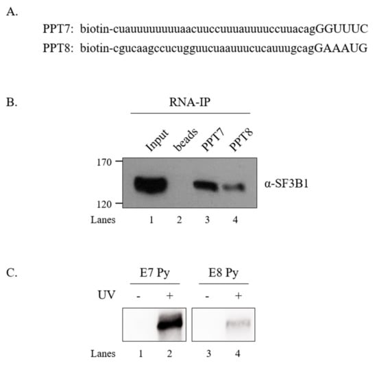 3.5. SF3B1 Binds to PPT7 More Strongly than PPT8