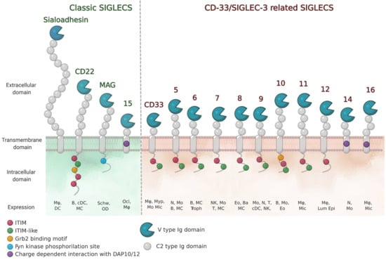 - Duan, S.; Paulson, J.C. Siglecs as immune cell checkpoints in disease. Annu. Rev. Immunol. 2020, 38, 365–395. [Google Scholar] [CrossRef] [PubMed]