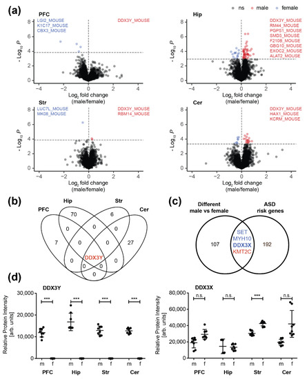 - Zettergren, A.; Karlsson, S.; Studer, E.; Sarvimäki, A.; Kettunen, P.; Thorsell, A.; Sihlbom, C.; Westberg, L. Proteomic analyses of limbic regions in neonatal male, female and androgen receptor knockout mice. BMC Neurosci. 2017, 18, 9. [Google Scholar] [CrossRef]