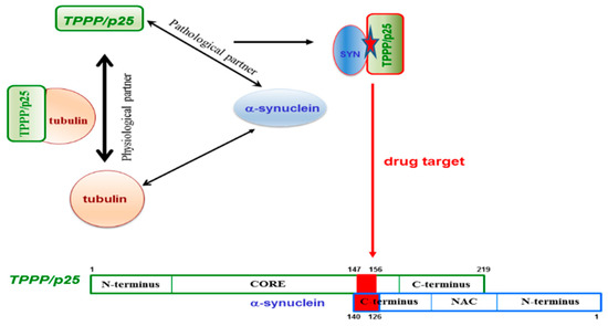 - Olah, J.; Bertrand, P.; Ovadi, J. Role of the microtubule-associated TPPP/p25 in Parkinson’s and related diseases and its therapeutic potential. Expert Rev. Proteom. 2017, 14, 301–309. [Google Scholar] [CrossRef]