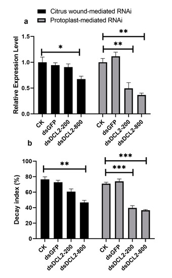 - Wang, M.; Thomas, N.; Jin, H. Cross-kingdom RNA trafficking and environmental RNAi for powerful innovative pre- and post-harvest plant protection. Curr. Opin. Plant Biol. 2017, 38, 133–141. [Google Scholar] [CrossRef]