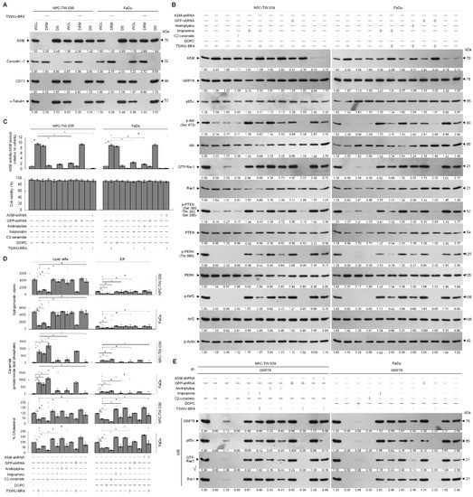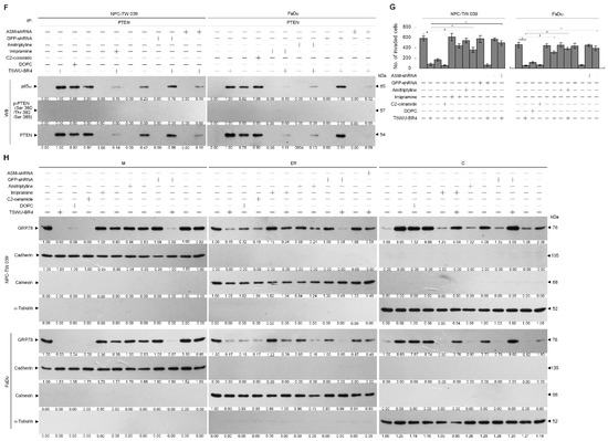 3.4. Activation of ASM by TSWU-BR4 Deregulates Membrane Trafficking of GRP78, Causes the Lipid Raft Membrane-Associated p85α–Unphosphorylated PTEN Complex Formation, and Thereby Attenuates GRP78-Modulated Oxidative Stress Balance and Cell Invasion