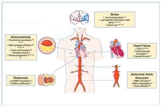 Abdominal aortic aneurysm (AAA) is a disease that affects 5% of elderly men and is responsible for a high number of deaths in Western countries [81]. Usually AAA remains asymptomatic, and it can be identified by an incidental routine imaging. However, the sudden rupture of an AAA in affected patients is associated with high morbidity and high mortality. Moreover, no specific drug treatments have been approved for clinical use in this disease, and endovascular or open repair is currently the only therapy when the aortic diameter is >5–5.5 cm [82]. Therefore, better understanding of the pathophysiology of AAA needs to be implemented to find novel therapeutic strategies.