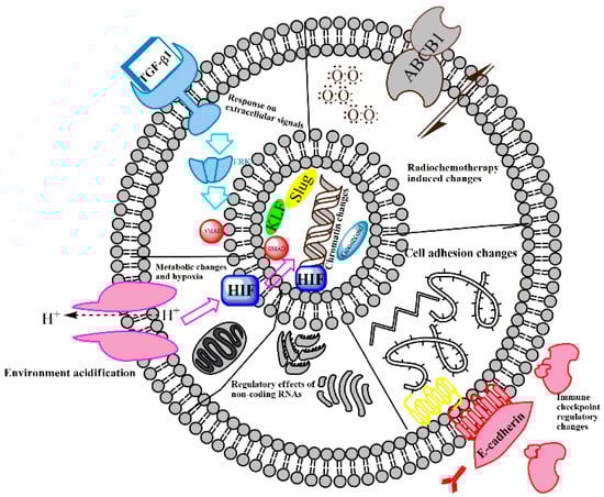 The previously summarized data revealed that either repeated therapeutic challenges or hostile environmental effects cumulate stress on tumor cells, which respond to an EMT transcriptional program. If hypoxia is involved in the challenges, the cells also provide a stem cell-like survival profile. The therapy resistance contains elements of altered death receptor signaling [111], the induction of survival signaling pathways [111], the induction of DNA repair proteins [25], and cell division changes, such as senescence [107], instead of a cell division cycle, as well as the generation of giant cells by DNA replication without cell division [110]. The EMT therapy resistance and cancer stem cell profiles share the mechanisms of transcription regulation [89,100,107,110]. Several miRNAs are involved in these transcription regulatory pathways.