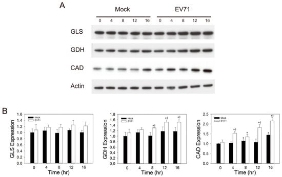 3.5. Expression of GDH and CAD is Upregulated during EV71 Infection