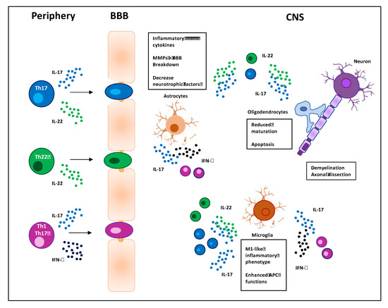 - Tahmasebinia, F.; Pourgholaminejad, A. The role of Th17 cells in auto-inflammatory neurological disorders. Prog. Neuropsychopharmacol. Biol. Psychiatry 2017, 79, 408–416. [Google Scholar] [CrossRef] [PubMed]