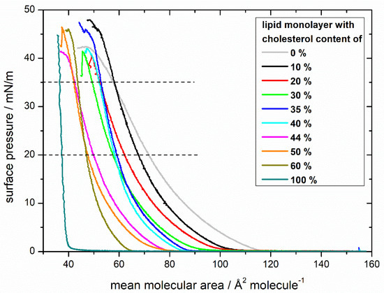 - Kodama, M.; Shibata, O.; Nakamura, S.; Lee, S.; Sugihara, G. A Monolayer Study on Three Binary Mixed Systems of Dipalmitoyl Phosphatidyl Choline with Cholesterol, Cholestanol and Stigmasterol. Colloids Surfaces B Biointerfaces 2004, 33, 211–226. [Google Scholar] [CrossRef]