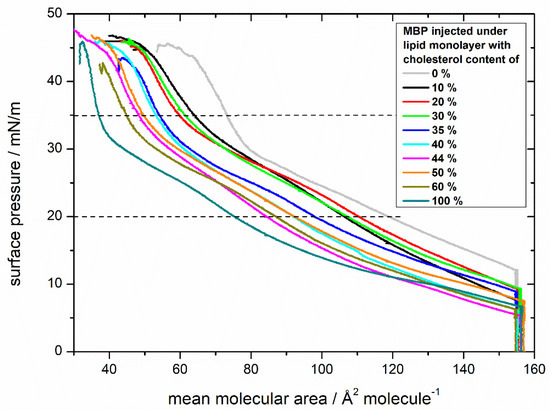 APA StyleTräger, J., Widder, K., Kerth, A., Harauz, G., & Hinderberger, D. (2020). Effect of Cholesterol and Myelin Basic Protein (MBP) Content on Lipid Monolayers Mimicking the Cytoplasmic Membrane of Myelin. Cells, 9(3), 529. https://doi.org/10.3390/cells9030529