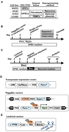 - Zhang, Y.; Pak, C.; Han, Y.; Ahlenius, H.; Zhang, Z.; Chanda, S.; Marro, S.; Patzke, C.; Acuna, C.; Covy, J.; et al. Rapid single-step induction of functional neurons from human pluripotent stem cells. Neuron 2013, 78, 785–798. [Google Scholar] [CrossRef]
