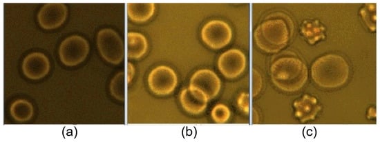 Blood samples diluted in fetal bovine serum for blood transfusion treatment evaluation with OTs: (a) normal fresh sample, (b) normal stored sample and (c) transfused SCA sample [124].