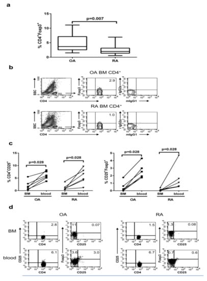 3.2. Proportions of CD4+FOXP3+ T Cells Are Lower in RA than in OA BM