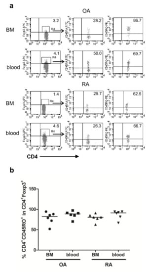 3.5. CD4+FOXP3+ Cells from RA BM Are CD45RO+ Memory Cells