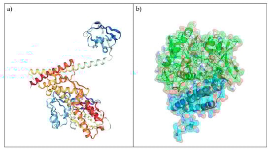 - Waterhouse, A.; Bertoni, M.; Bienert, S.; Studer, G.; Tauriello, G.; Gumienny, R.; Heer, F.T.; de Beer, T.A.P.; Rempfer, C.; Bordoli, L.; et al. SWISS-MODEL: Homology modelling of protein structures and complexes. Nucleic Acids Res. 2018, 46, W296–W303. [Google Scholar] [CrossRef]