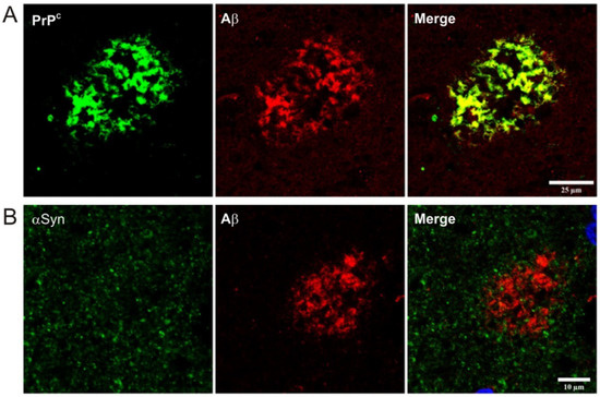 - Ferrer, I.; Blanco, R.; Carmona, M.; Puig, B.; Ribera, R.; Rey, M.J.; Ribalta, T. Prion protein expression in senile plaques in Alzheimer’s disease. Acta Neuropathol. 2001, 101, 49–56. [Google Scholar] [CrossRef]