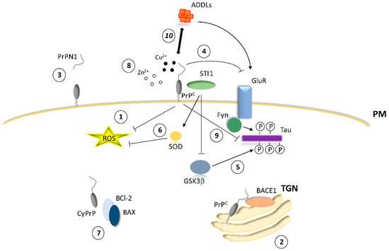 - Lauren, J.; Gimbel, D.A.; Nygaard, H.B.; Gilbert, J.W.; Strittmatter, S.M. Cellular prion protein mediates impairment of synaptic plasticity by amyloid-beta oligomers. Nature 2009, 457, 1128–1132. [Google Scholar] [CrossRef]