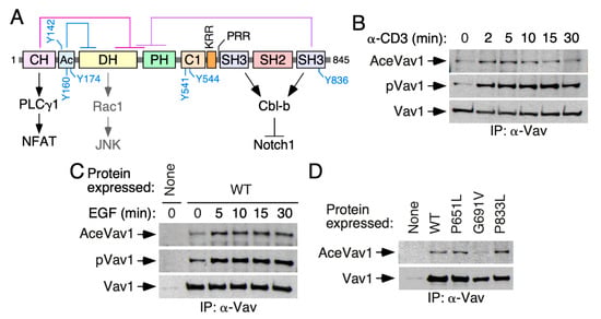 3.1. Acetylation of Vav1 is Modulated by Upstream Stimuli