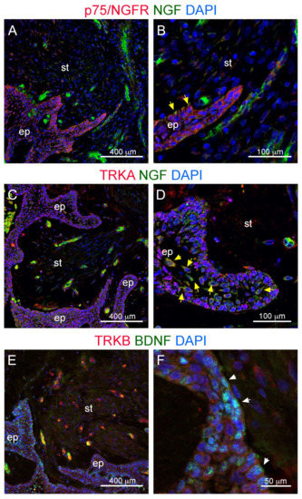 - Aloe, L.; Rocco, M.L.; Balzamino, B.O.; Micera, A. Nerve growth factor: Role in growth, differentiation and controlling cancer cell development. J. Exp. Clin. Cancer Res. 2016, 35, 116. [Google Scholar] [CrossRef] [PubMed]