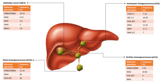 - Nakamura, H.; Arai, Y.; Totoki, Y.; Shirota, T.; Elzawahry, A.; Kato, M.; Hama, N.; Hosoda, F.; Urushidate, T.; Ohashi, S.; et al. Genomic spectra of biliary tract cancer. Nat. Genet. 2015, 47, 1003–1010. [Google Scholar] [CrossRef] [PubMed]